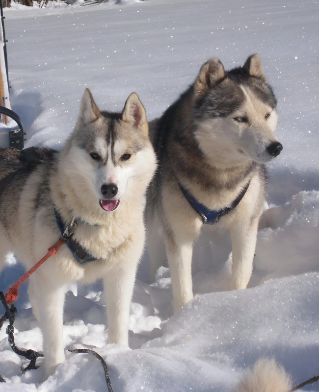 Le chien de traîneau est un animal hors norme : son histoire auprès des peuples du Grand Nord (Inuits, explorateurs) et ses capacités uniques de survie sont passionnantes. Afin de garantir une bonne expérience lors de nos sorties, de bonnes chaussures sont impératives (type randonnée ou tout-chemin, semelles non lisses). Pour approfondir cette rencontre et aller au-delà de la découverte simple, nous vous proposons différentes formules d’activités.